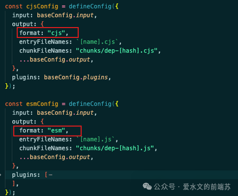 首先,要选一个打包工具,并确定输出,笔者这里选择 cjs 和 esm 两种输出格式,