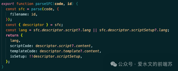 通过@vue/compiler-sfc可以拿到. vue 文件的基本信息,这包括了 script 和 template 部门的源码