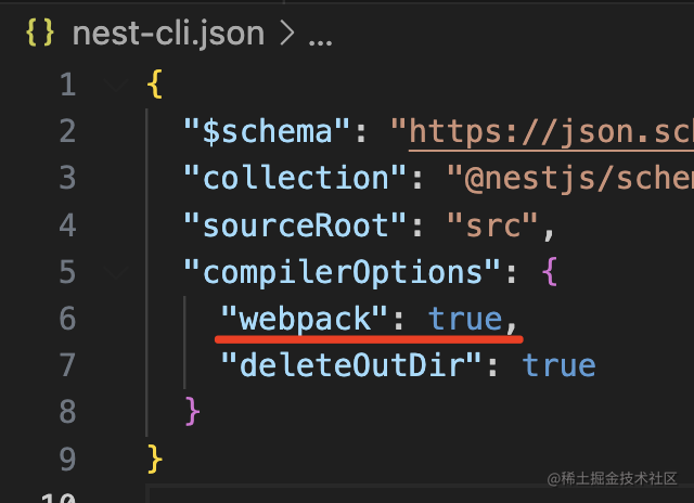 我把根目录 nest-cli.json 里改为了用 webpack 编译: