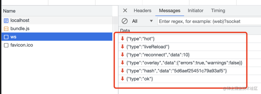 你会看到 ws 收到了 type 为 hash 的消息,带着最新的 hash。