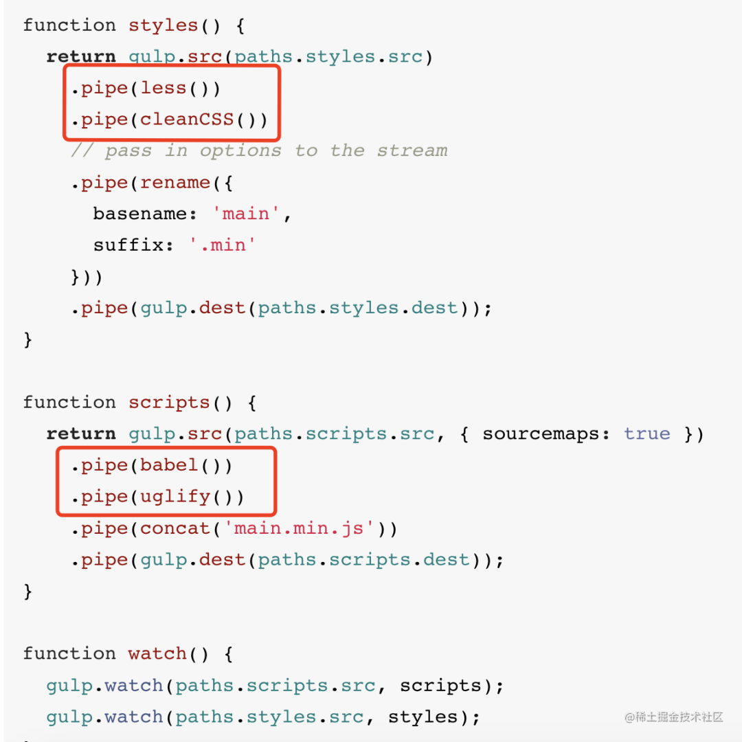 后来出现了 gulp 这种任务运行器,可以自动化执行一系列任务: