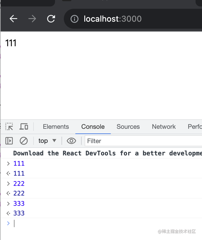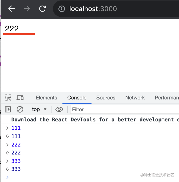 我在 devtools 手动打印了 111、222、333。