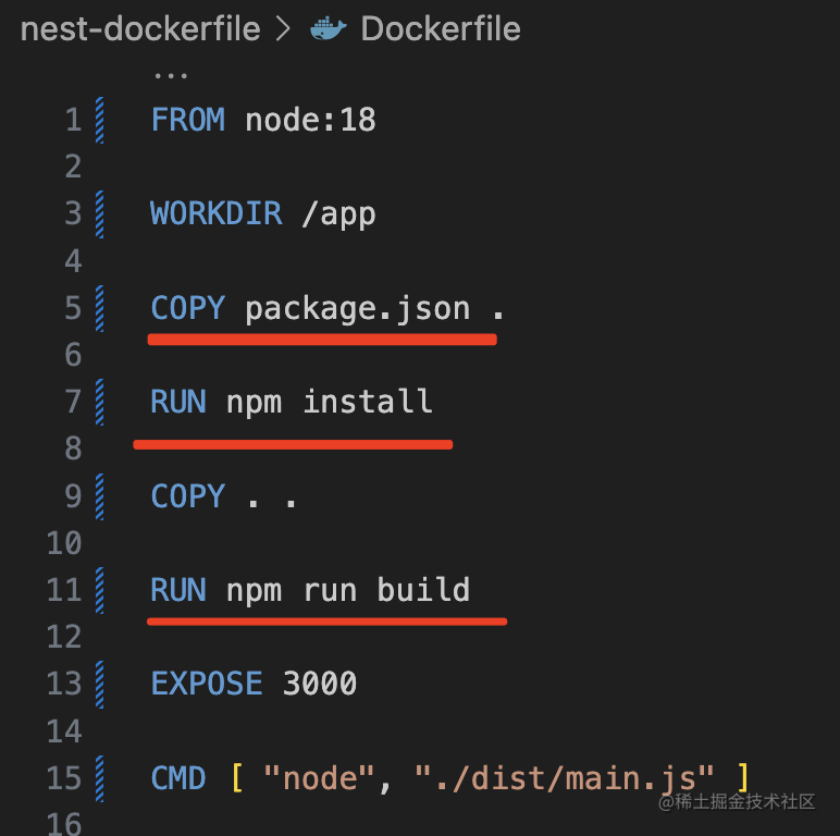 比如这个 nest 应用的 dockerfile 是这样的:
