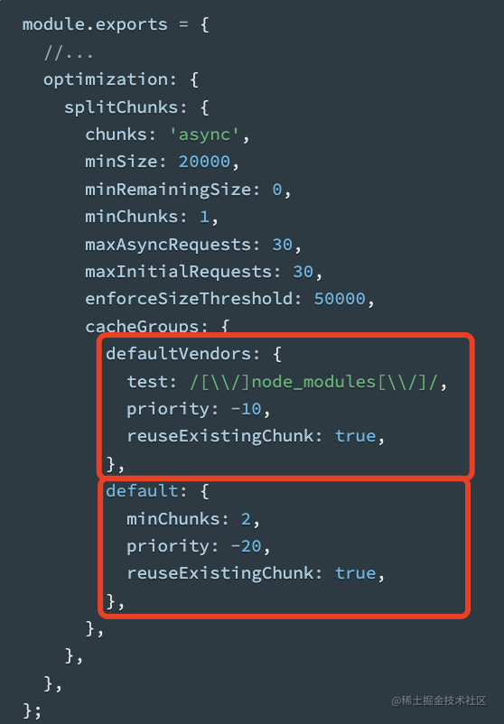 当然,这个 chunk 拆分的逻辑是可以自定义的,也就是 optimization.splitChunks 的配置: