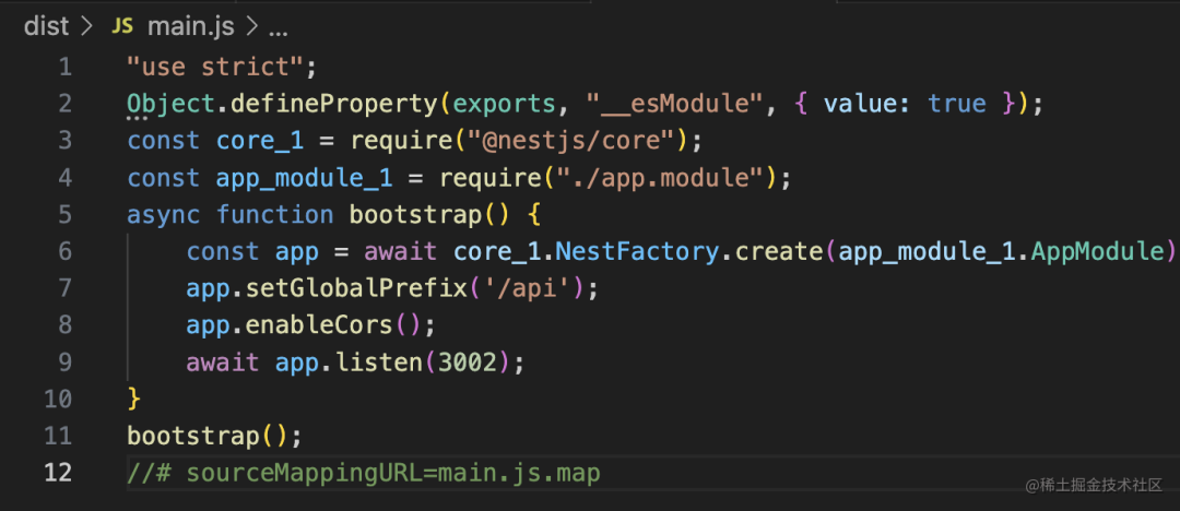 这样编译后的代码和对应的依赖都有了,通过 node 跑起来就行。