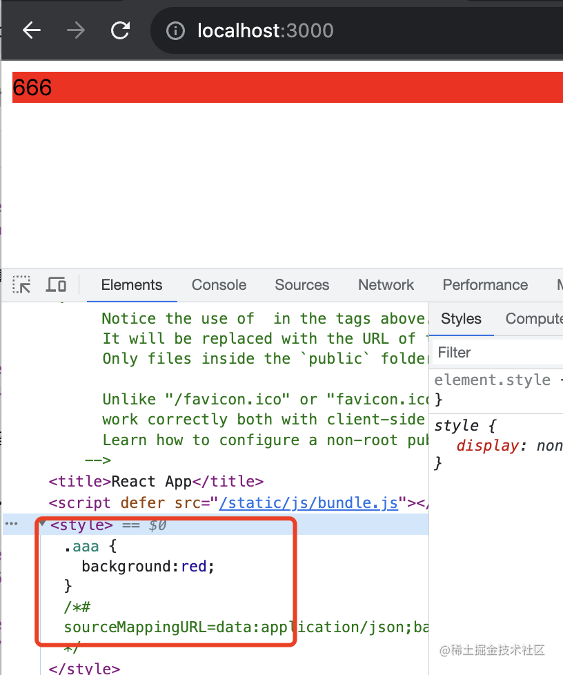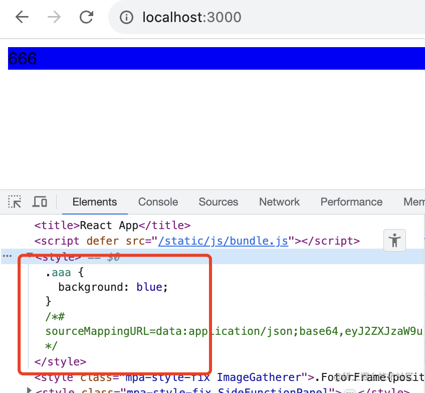 这里的 style 是 sytle-loader 注入到 html 里的,前面讲过。