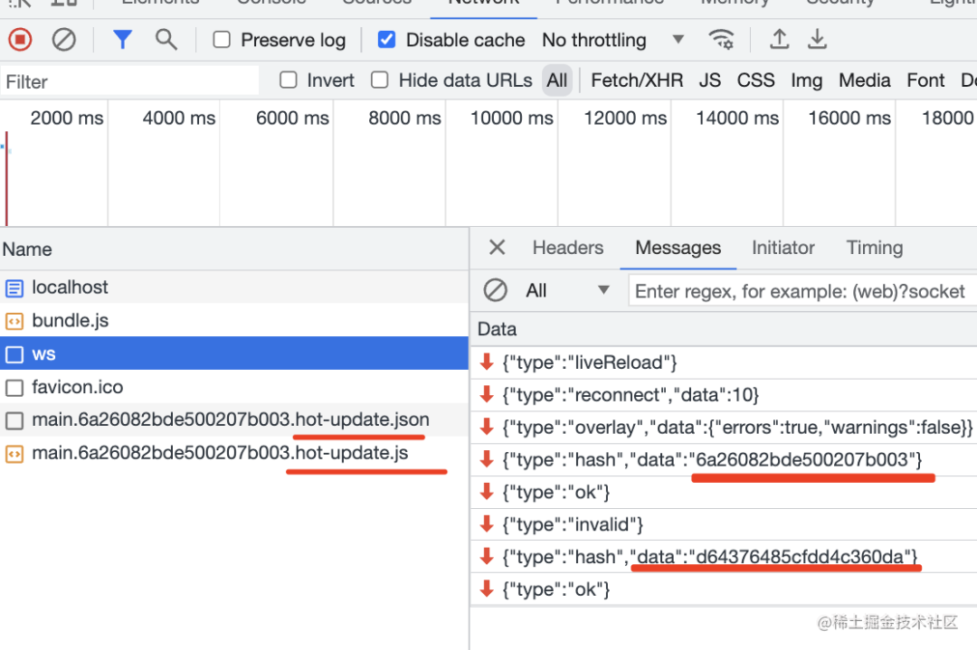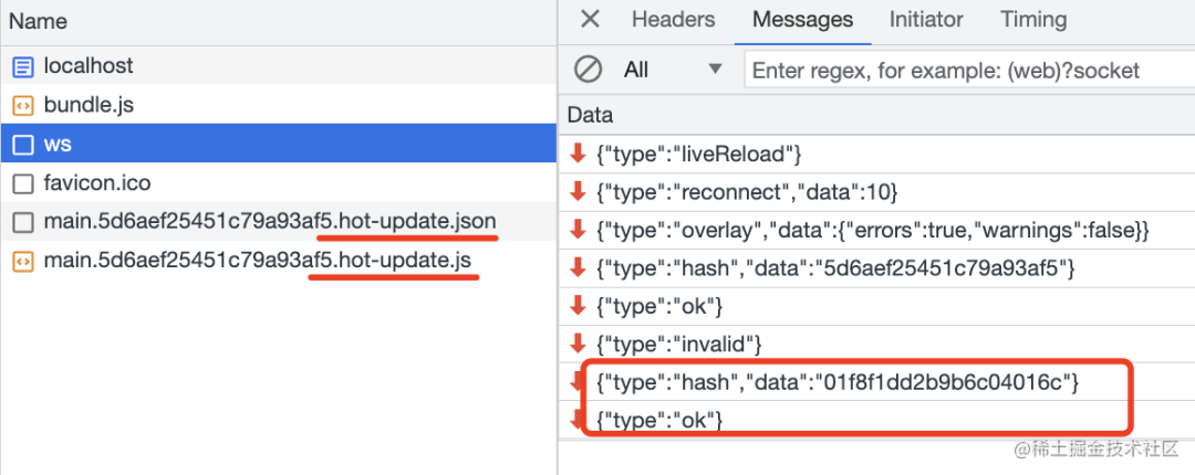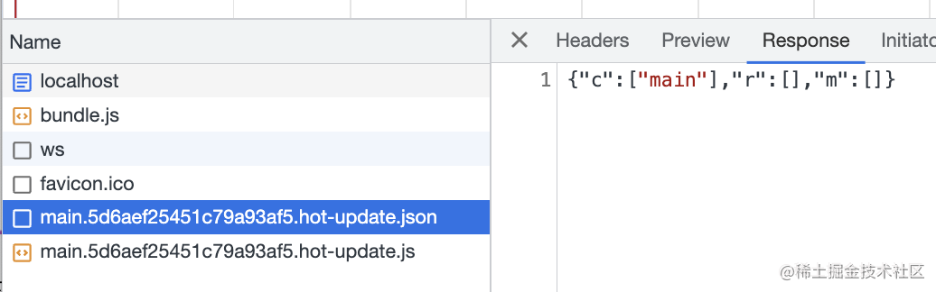浏览器的 webpack runtime 收到变动消息之后,会下载对应的 xxx.hot-update.json 和 xxx.hot-update.js 文件
