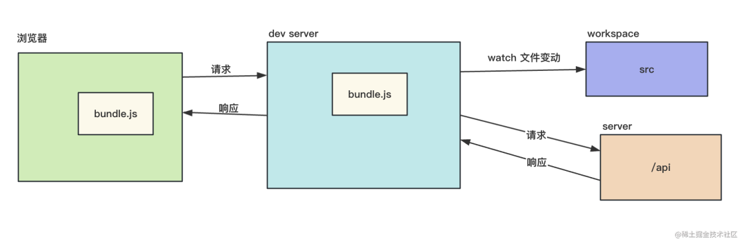 然后是 dev server 功能,这个就是 webpack 在开发时会启用一个静态服务器,这个静态服务器除了提供静态资源的访问外,还支持代理等功能: