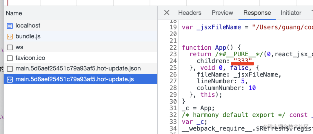 并且发送了 xxx.hot-update.json 和 xxx.hot-update.js 的请求。