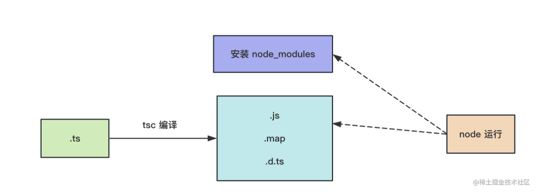 当然,现在也有很多场景是不打包的,比如 node 环境,就只需要编译: