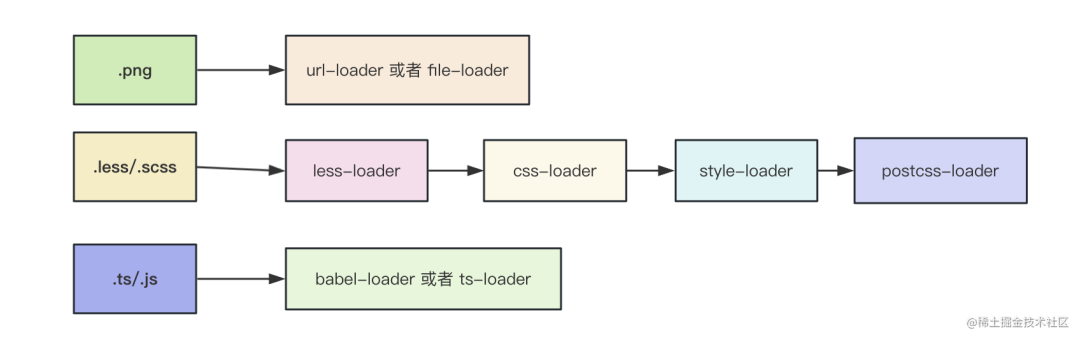 至于 less-loader、scss-loader、postcss-loader、ts-loader、babel-loader,这些 loader 只是对模块内容做编译,没有做什么额外的事情。