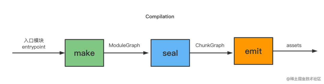 webpack 的编译流程分为 3 个阶段:make、seal、emit。