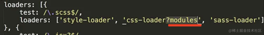 这个功能是 css-loader 实现的,开启很简单,加上一个 modules 标识就行:
