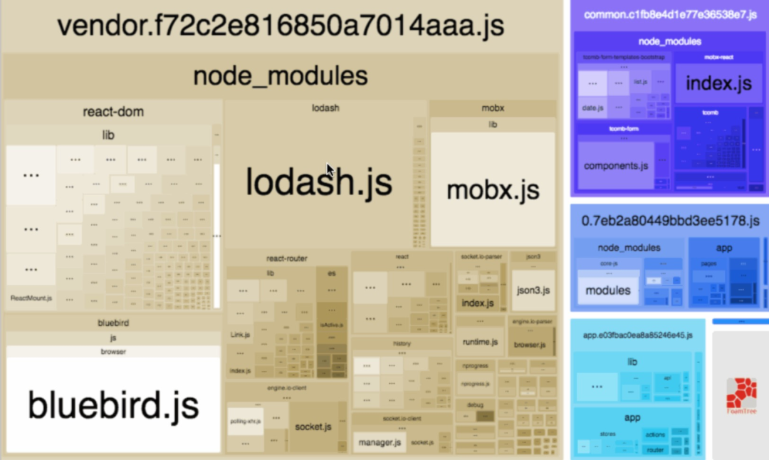 很常见的就是 webpack-bundle-analyzeer[3],提供打包结果的可视化展示,如上图给予的决策帮助是: