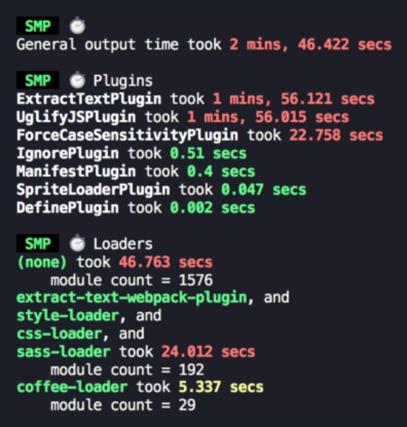 数据先行,通过 speed-measure-webpack-plugin[1] 采集性能指标,可以得到 webpack 在整个编译过程中在 loader、plugin 上花费的时间,基于该数据可以专项的进行优化和治理。
