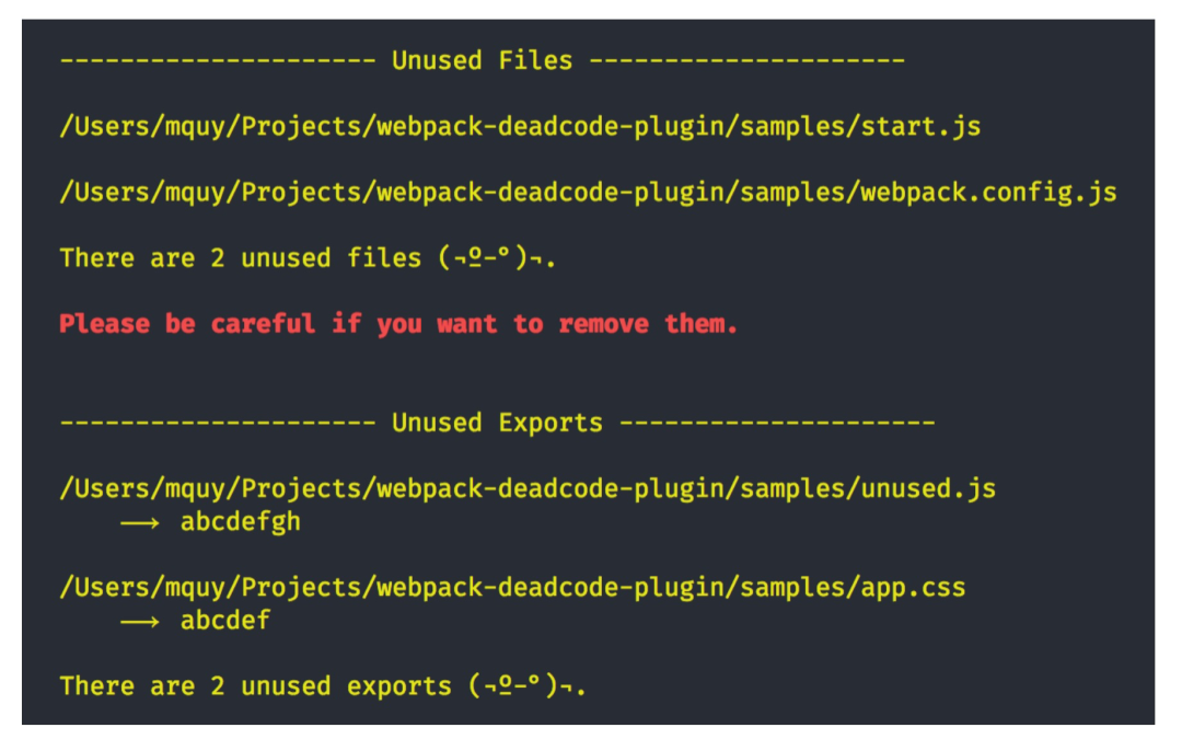 通过 webpack-deadcode-plugin,可以快速筛选出: