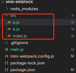 首先在根目录下创建 src 文件夹,新建 a.js、b.js、index.js 三个文件