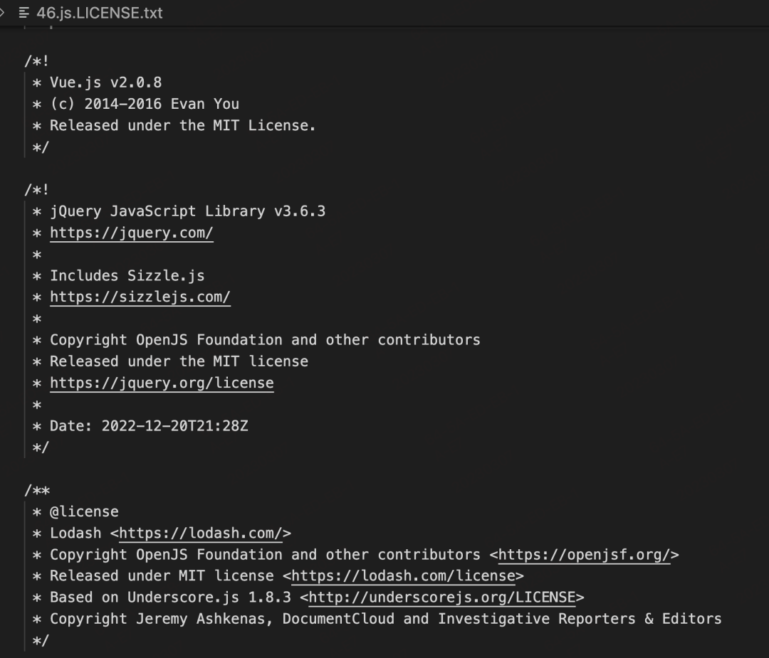 vue、jquery、lodash等一起都被打包到 46.js 中,并没有以20kb为基础平均分割成很多个chunk。