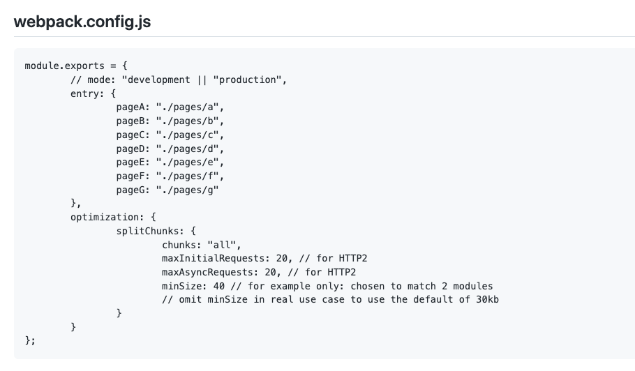 随着http2.0的普及,浏览器的并发请求的限制得到了很好的解决。通过http2.0的多路复用,理论上可以通过一个TCP请求发送无数个请求。然后翻了下webpack代码仓库源码,发现了以下注释: