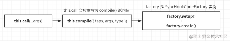 this.call = this._createCall("sync");通过 this._createCall 的实现可以知道,this.call 被重写为 this.compile 的返回值: