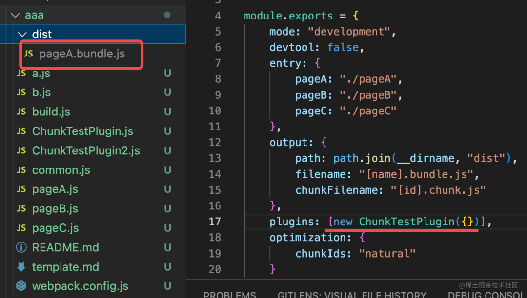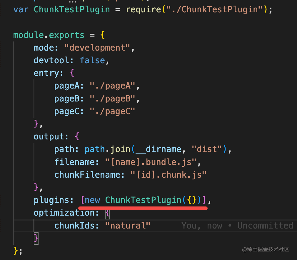 class ChunkTestPlugin { constructor(options) { this.options = options || {}; } apply(compiler) { const options = this.options; compiler.hooks.thisCompilation.tap("ChunkTestPlugin", compilation => { compilation.hooks.optimizeChunks.tap("ChunkTestPlugin", chunks => { return true; }); }); }}module.exports = ChunkTestPlugin;把 options 挂到 this 上。