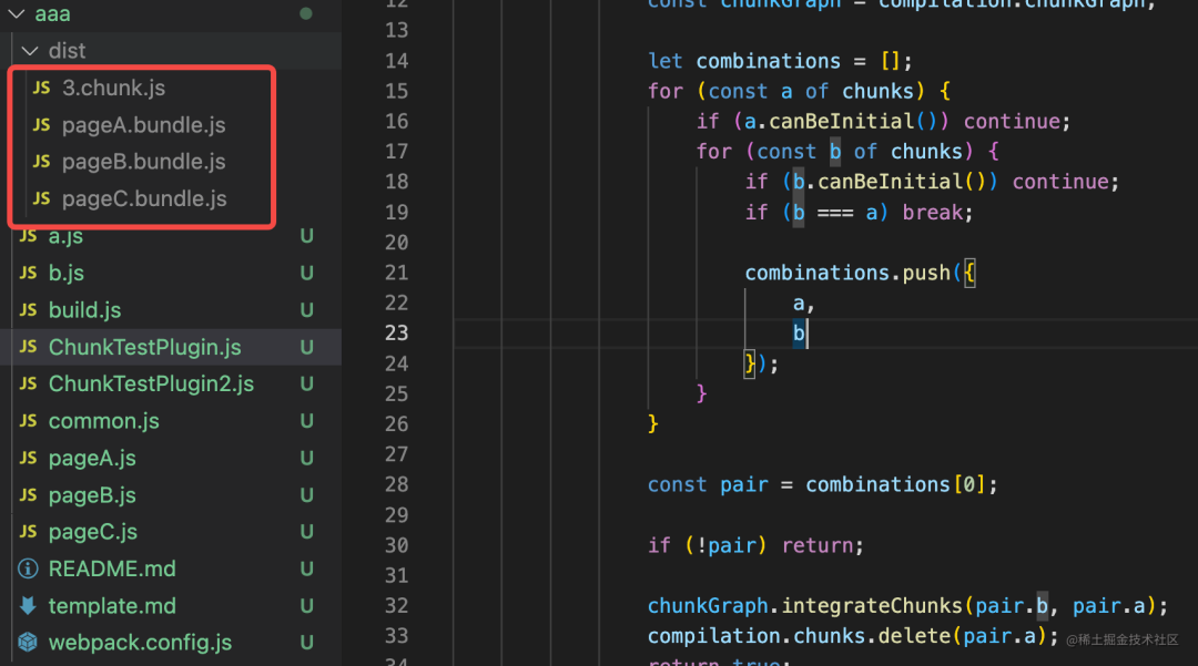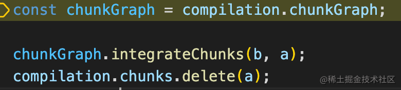 chunkGroup 有一个 integrateChunks 的 api,把后面的 chunk 合并到前面的 chunk 里: