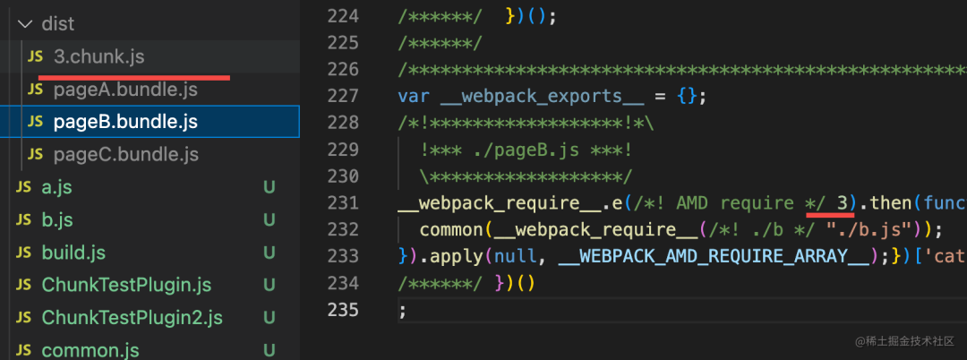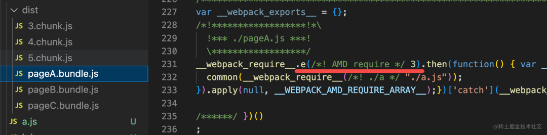 require(["./a"], function(a) { console.log(a + require("./b"));});这三个模块里都通过 requrie() 或者 import() 的 webpack api 来动态引入了一些模块。