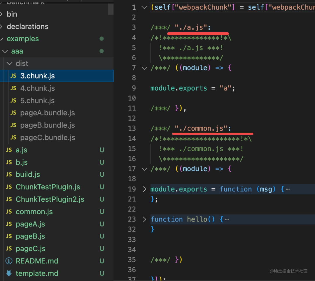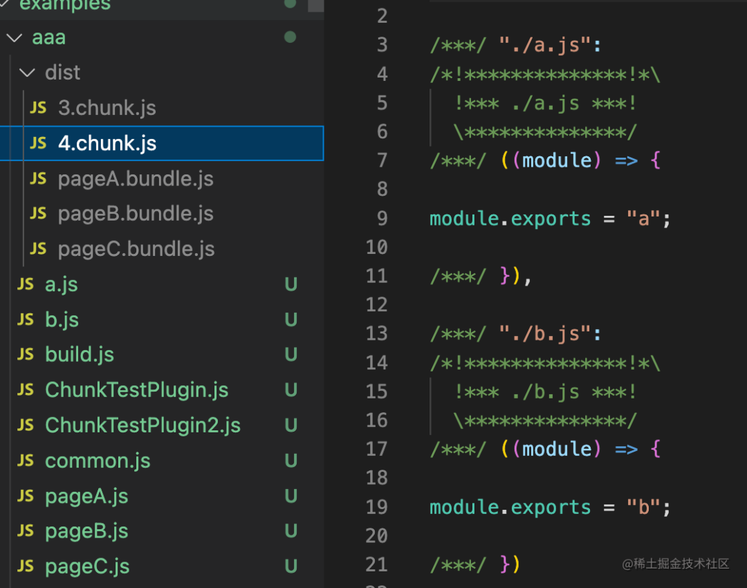 module.exports = function (msg) { console.log(msg);};function hello() { return "guangguangguangguangguangguanggua" + "ngguangguangguangguangguangguangguangguangg" + "uangguangguangguangguangguangguangguangguangg" + "uangguangguangguangguangguangguangguangguang" + "guangguangguangguangguangguangguangguangguangguang" + "guangguangguangguangguangguangguangguangguangguangguang";}webpack 会从入口模块开始构建 ModuleGraph,然后划分 Chunk,构成 ChunkGraph。