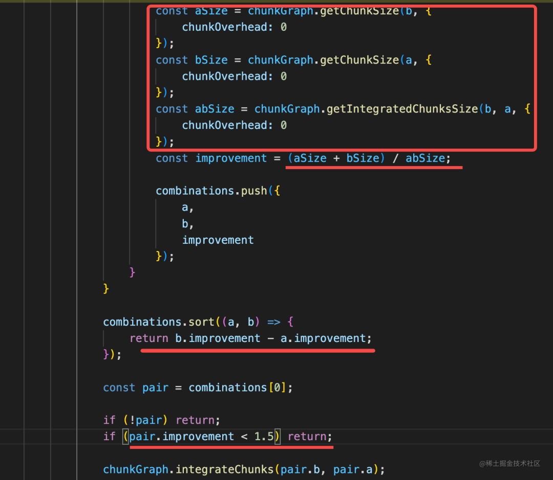 通过 chunkGraph.getChunkSize 的 api 拿到 chunk 大小,通过 chunkGroup.getIntegratedChunkSize 的 api 拿到合并后的 chunk 大小。