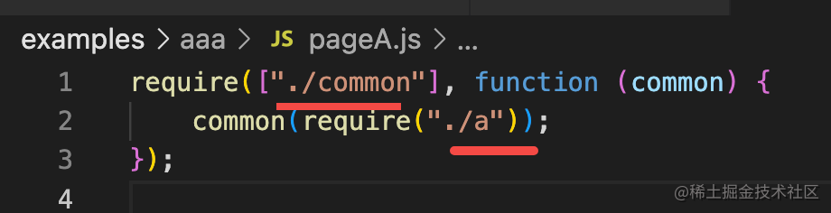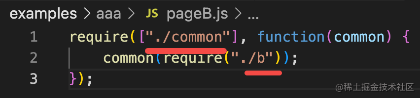require(["./common"], function (common) { common(require("./a"));});pageB: