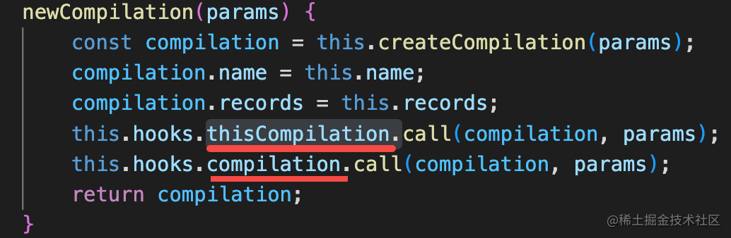 可以看到 thisCompilation 是在 newCompilation 这个方法调用的。