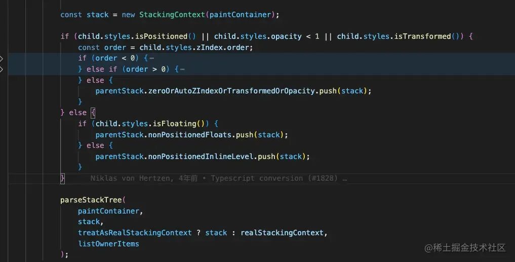 源码这里做了丰富的注释,能够清晰看到不同层叠上下文的渲染顺序。开发中如果有 z 轴的样式层级出错的情况,可以看下出错的样式所在的堆栈的渲染顺序,自行做下调整即可。