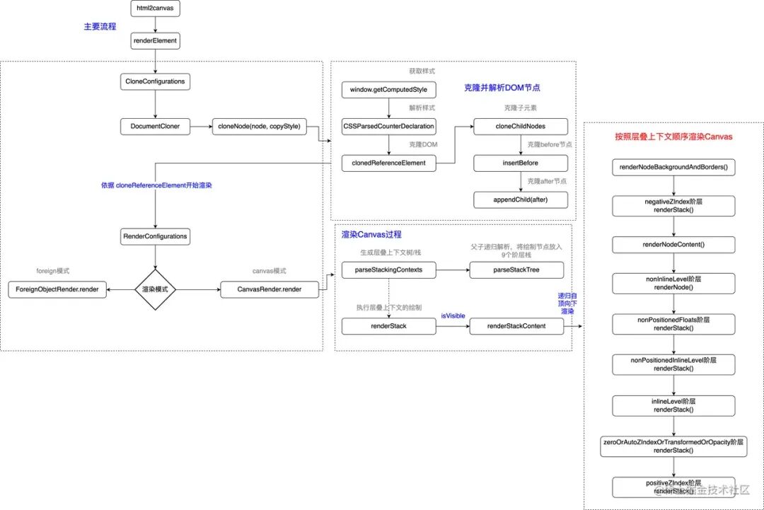 const renderer = new CanvasRenderer(context, renderOptions);// 声明全局canvas实例,传入渲染的相关参数canvas = await renderer.render(root);// 进行具体的DOM渲染到canvas中内部调用细节: