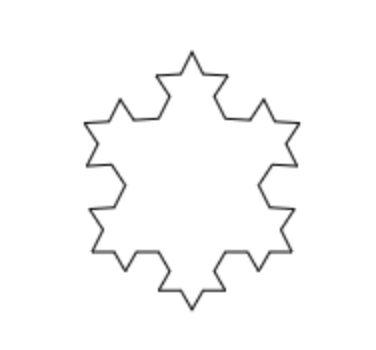 先看一下实现效果,它的基础图形是等边三角形。该图片的面积有限,但周长是无限的。每次迭代,线段的长度都会增加原长度的三分之一。