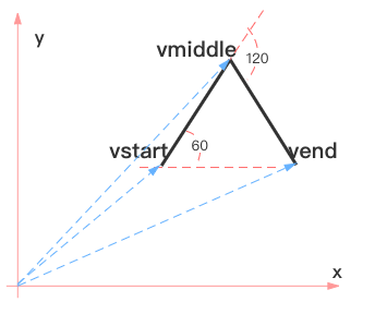 ctx.scale(1, -1);然后我们找到三角形的三个顶点,假设我们从 v1(100,100) 出发,三角形边长为 100,则通过向量变换可以获取其余两个顶点 v2、v3 向量。