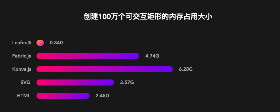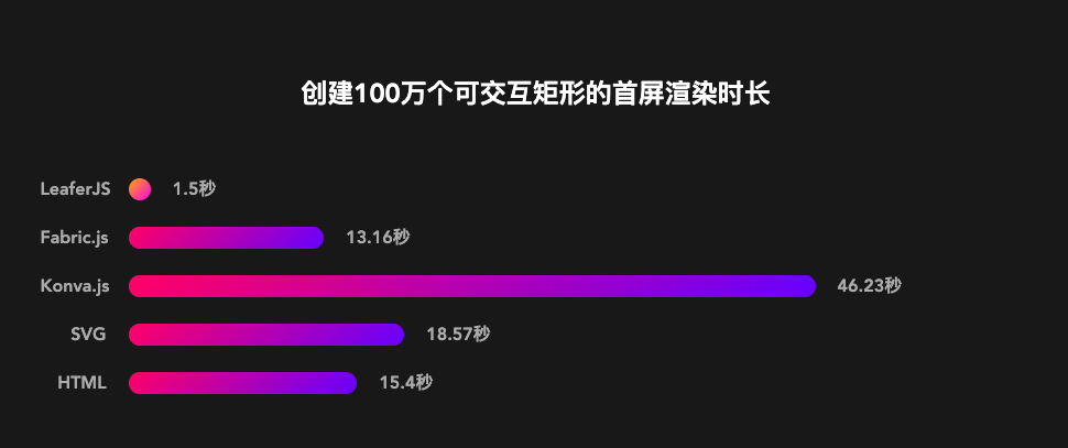LeaferJS 最最核心的一点就是性能至上,和目前市面上比较流行的 Canvas 库对比: