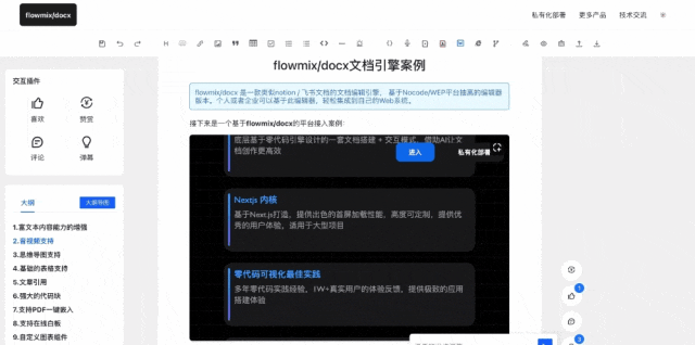 后面我也会持续迭代 flowmix/docx 多模态文档引擎, 来实现对 docx 文件的预览能力, 同时还会支持文档组件的图层管理和画线评论功能, 如果你有好的想法和建议, 欢迎随时和我反馈~