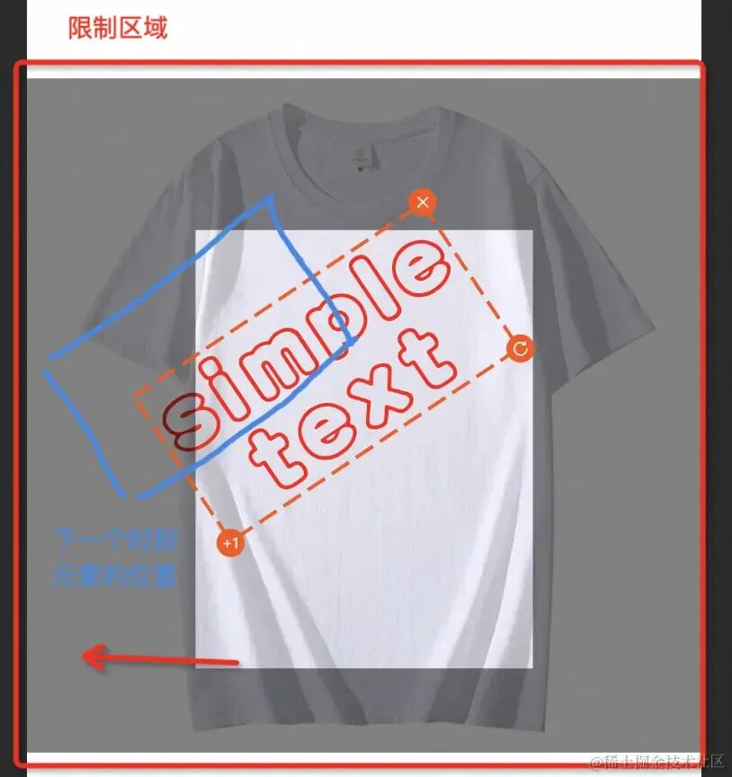 这两个问题的解决过程可谓是一波三折。这里需要注意两个点:一是,拖拽是一个连续的过程,拖拽的过程中只有位移,没有其他变换。二是,我们知道的不仅仅是 dragBoundFunc 传入的下一个时刻的 “左上角” 的坐标,我们还可以计算出当前时刻的元素的四个顶点的坐标。