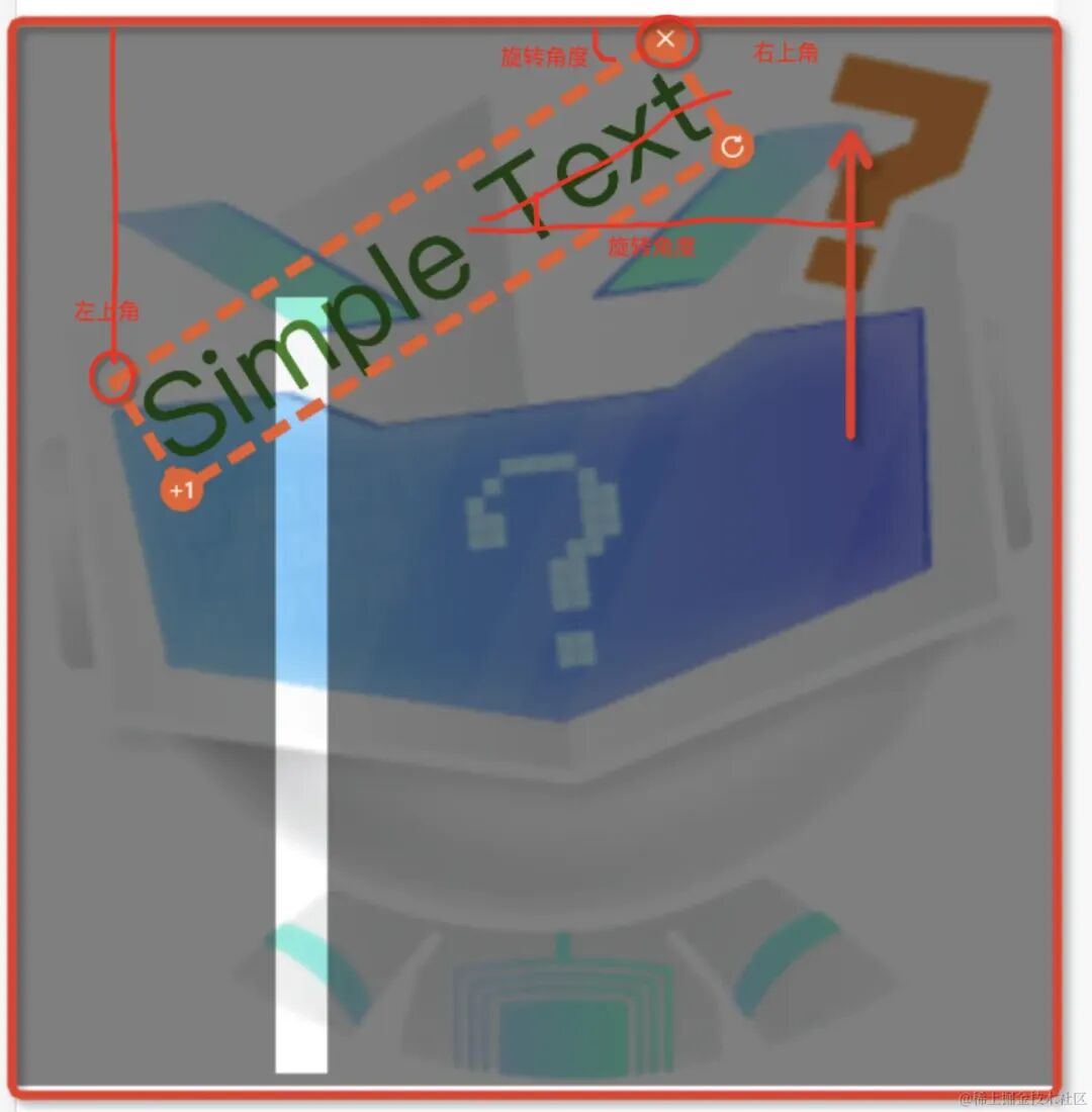 由于元素自身支持旋转,元素的 “左上角” 并不一定一直处于左上角的位置
