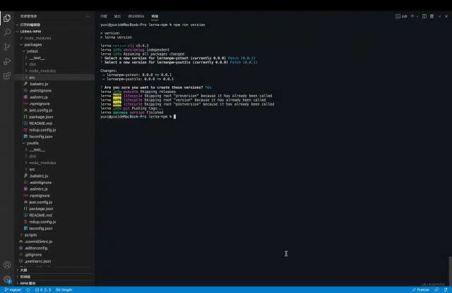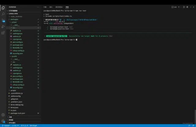 接来下,将会演示 lernanpm-yxutils 和 lernanpm-yxtest 的「创建」、「安装」、「开发」、「测试」、「构建」、「发布」、「依赖连接」、「同步构建发布」。