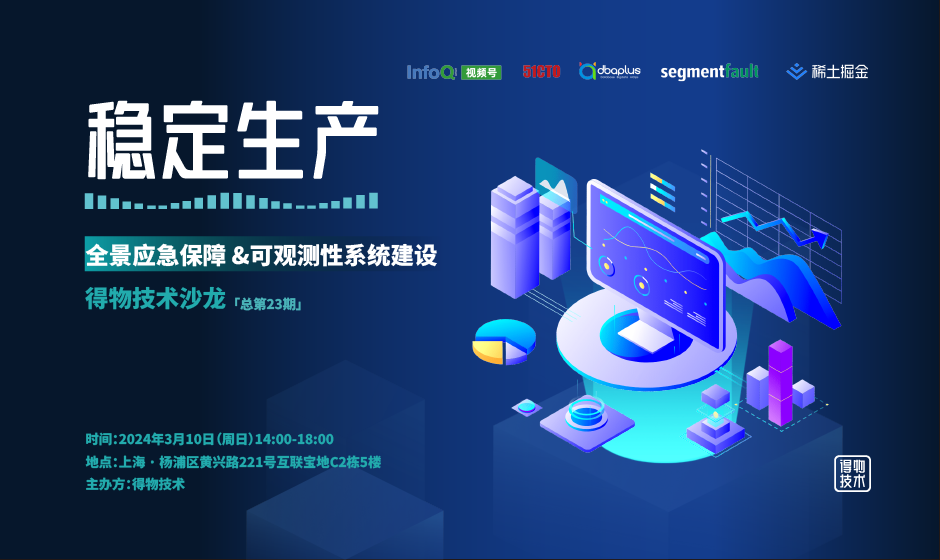 活动亮点:本次得物技术沙龙 - 稳定生产专场主题为全景应急保障 & 可观测性系统建设,将在上海(线上同步直播)为你带来五个令人期待的演讲话题: