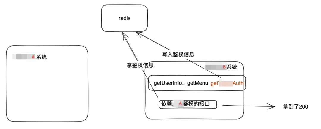 其原理图如下,可通过 getTicketAuth 接口将登陆态写入 Redis,第一张图为 B 平台,依赖 A 系统登陆。第二张图为改造后,不再依赖 A 系统登陆,原理还是比较好理解的,就不展开了。