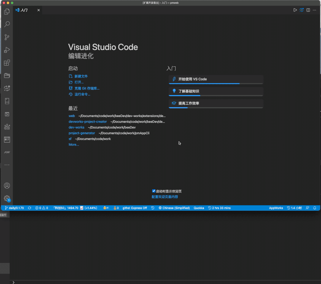 因为团队里 100% 的同学都是以 vscode 作为饭碗,所以自然而然的 vscode extinction 就是我的第一选择了。计划中会提供创建项目、新增页面、模块配置、页面配置、新增模块等一系列插件。后续阶段性进展,再发文总结。咳咳,是的,这将是一个**「源码工作台」**的赶脚~