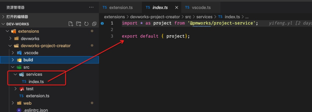 而@pmworks/project-service这个 package 里面也只是封装一些基本的方法调用。核心的处理逻辑比如下载对应gitRpo、解析本地文件等都是在对应的extension-utils 里面进行。「service 只管调用即可。」
