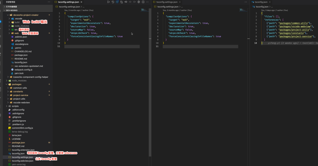 编码采用 ts 编码,所以对于 extensions 以及 packages 中都有很多公共的配置,这里可以提取出来公共部分放置到项目根目录下(如上项目目录截图)。