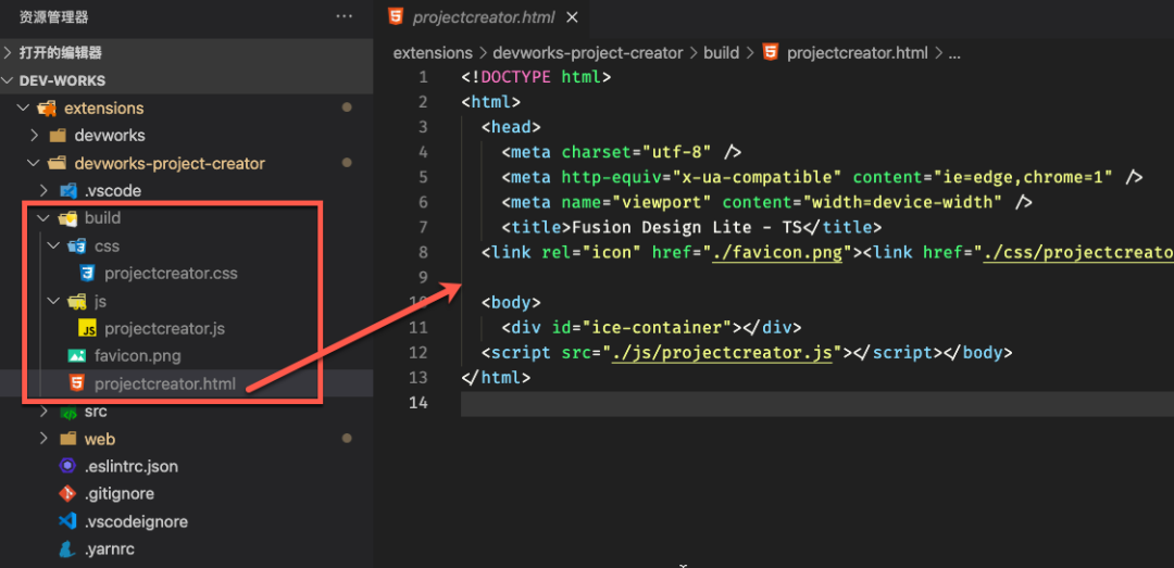 /** * 给本地资源带上安全协议 * @param url 本地资源路径 * @returns 带有 vscode-resource 协议的安全路径 */function originResourceProcess(url: string) { return vscode.Uri.file(url).with({ scheme: 'vscode-resource' });}export const getHtmlFroWebview = ( extensionPath: string, entryName: string, needVendor?: boolean, cdnBasePath?: string, extraHtml?: string, resourceProcess?: (url: string) => vscode.Uri,): string => { resourceProcess = resourceProcess || originResourceProcess; const localBasePath = path.join(extensionPath, 'build'); const rootPath = cdnBasePath || localBasePath; const scriptPath = path.join(rootPath, `js/${entryName}.js`); const scriptUri = cdnBasePath ? scriptPath : resourceProcess(scriptPath); const stylePath = path.join(rootPath, `css/${entryName}.css`); const styleUri = cdnBasePath ? stylePath : resourceProcess(stylePath); // vendor for MPA const vendorStylePath = path.join(rootPath, 'css/vendor.css'); const vendorStyleUri = cdnBasePath ? vendorStylePath : resourceProcess(vendorStylePath); const vendorScriptPath = path.join(rootPath, 'js/vendor.js'); const vendorScriptUri = cdnBasePath ? vendorScriptPath : resourceProcess(vendorScriptPath); // Use a nonce to whitelist which scripts can be run const nonce = getNonce(); return `<!DOCTYPE html> <html> <head> <meta charset="utf-8"> <meta ${styleUri}"> ${extraHtml || ''} ` + (needVendor ? `<link rel="stylesheet" type="text/css" href="${vendorStyleUri}" />` : '') + ` </head> <body> <noscript>You need to enable JavaScript to run this app.</noscript> <div id="ice-container"></div> ` + (needVendor ? `<script nonce="${nonce}" src="${vendorScriptUri}"></script>` : '') + `<script nonce="${nonce}" src="${scriptUri}"></script> </body></html>`;}function getNonce(): string { let text = ''; const possible = 'ABCDEFGHIJKLMNOPQRSTUVWXYZabcdefghijklmnopqrstuvwxyz0123456789'; for (let i = 0; i < 32; i++) { text += possible.charAt(Math.floor(Math.random() * possible.length)); } return text;}方法位于 packages/vscode-webview/vscode.ts ,其实**「就是获取一段 html」**,将本地资源添加 vscode 协议。支持 vendor、extraHtml等