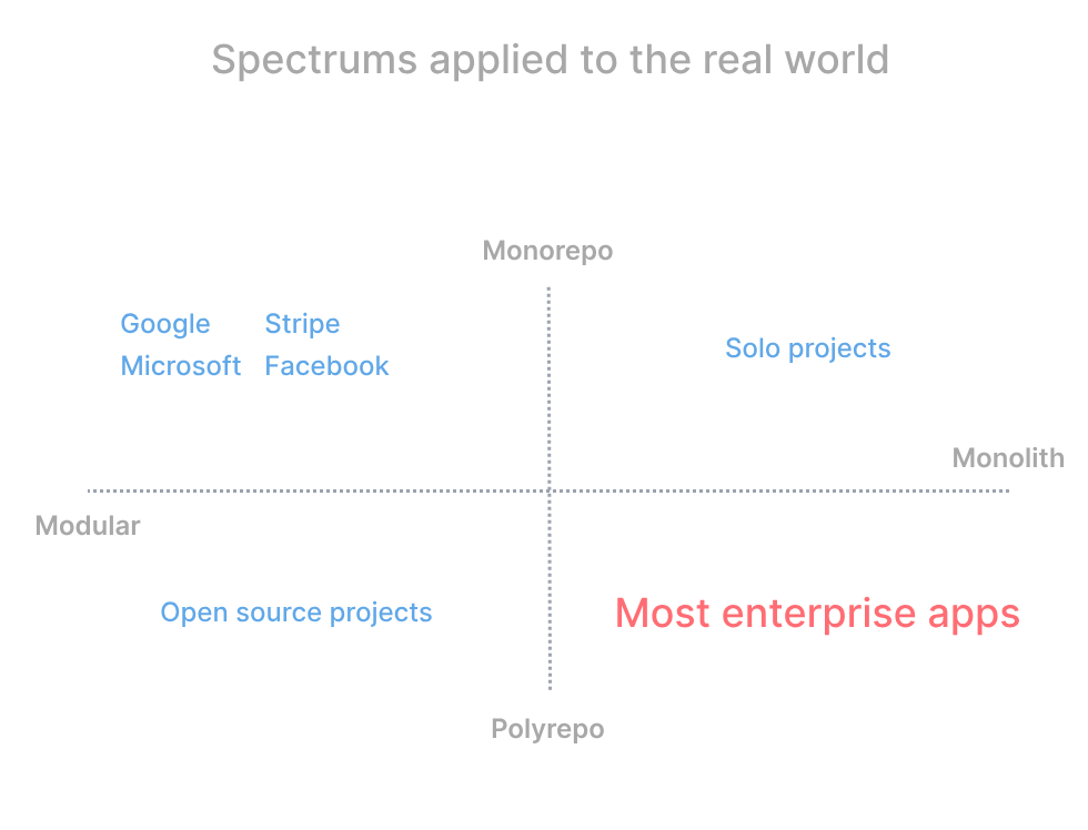 类似地,如果一个代码库中包含了一个庞大的应用,而没有对其进行分割和封装,那么这只是一个大型的代码库,而不是真正的 Monorepo。即使你给它取一个花里胡哨的名字,也不能改变它的本质。