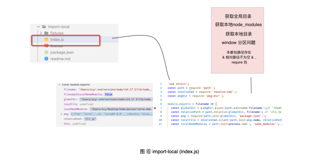 如图六和下方代码,很显然 resolve-cwd 和 pkg-dir 是实现 import-local 的主要工具包