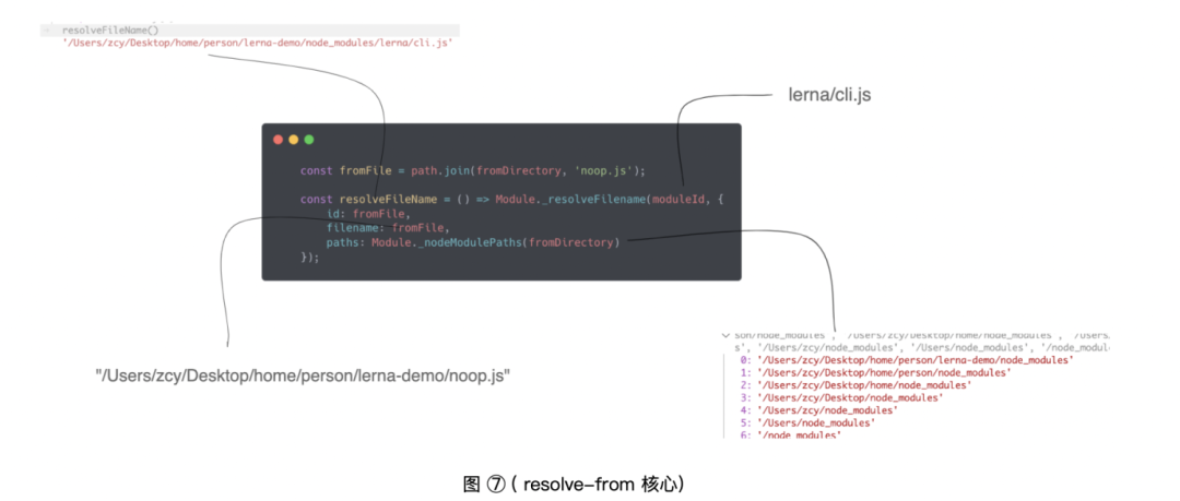 const path = require('path');const Module = require('module');// 省略部分代码const fromFile = path.join(fromDirectory, 'noop.js'); // '/Users/Desktop/home/person/lerna-demo/noop.js'const resolveFileName = () => Module._resolveFilename(moduleId, { id: fromFile, filename: fromFile, paths: Module._nodeModulePaths(fromDirectory)});使用原生的 module 的原生的两个 Api:Module._resolveFilename 和 Module._nodeModulePaths