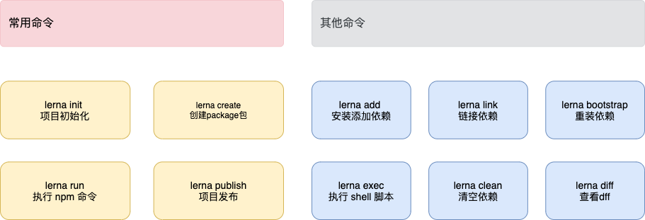 Lerna 的几个基本常用指令, 不是本文重点哦。文档在这里 (https://lerna.js.org/)。